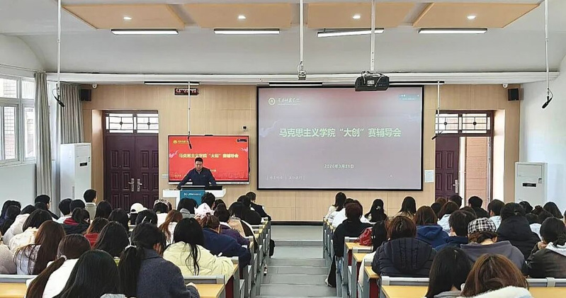 为扎实推进创新创业教育,提升学生竞赛水平与项目质量,3月21日下午,马克思主义学院在博学楼B02举办“大创”赛事专题辅导会。院长夏慧、党委副书记尹志、副院长李威出席会议,学院师生代表约200人参加线上和线下学习。