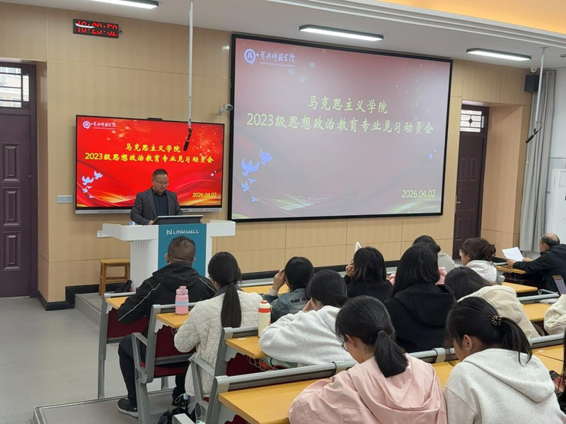 为切实加强师范生实践能力培养,明确教育见习目标任务,4 月 2 日下午,院在博学楼 A02 召开 2023 级思想政治教育专业师范生教育见习动员大会。见习指导老师 2023 级全体学生参加会议。